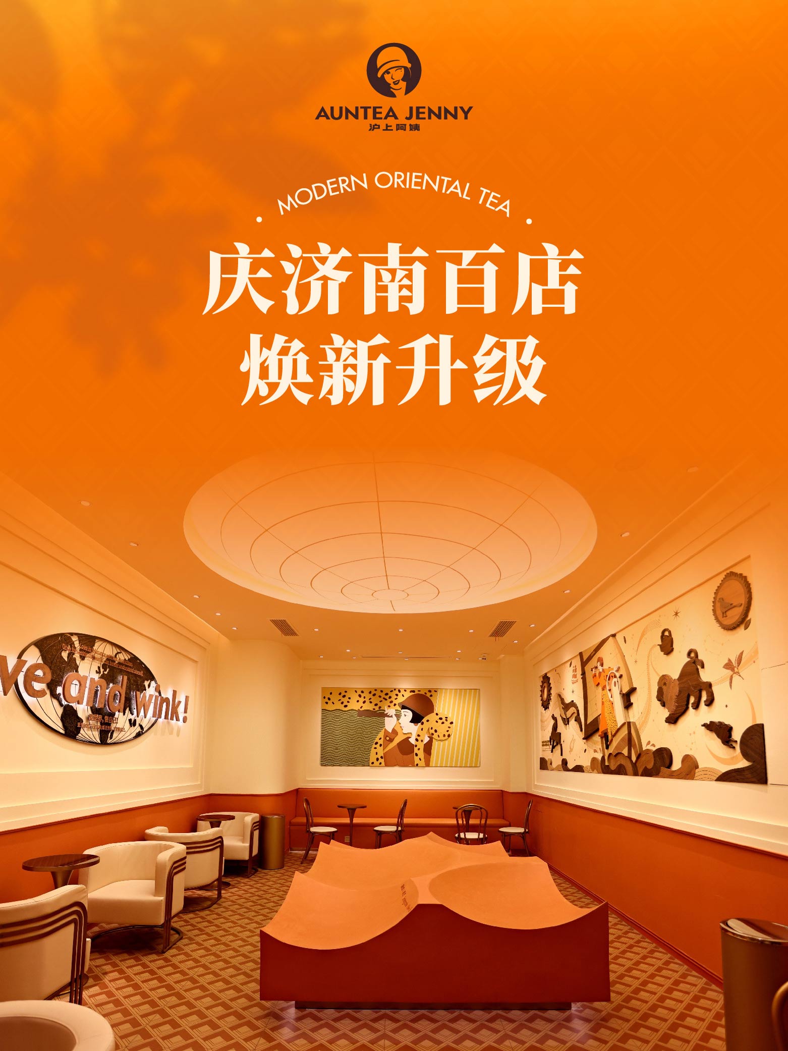 與此同時,滬上阿姨提出全新(xīn)品牌理(lǐ)念:“Love and Wink”。官方對其闡釋是:“Love”代表着獨立、探索、融合與新(xīn)生,是品牌對于自身發展路徑的堅持與追求;“Wink”則代表着品牌包容開放、獨立自信的輕松态度,是品牌與消費者之間互動與溝通的方式。5.0的門店(diàn)形象上,采用(yòng)幾何線(xiàn)條配合美拉德(dé)肌理(lǐ)感的空間配色,營造出一種海派都市新(xīn)摩登的空間氛圍。品牌形象店(diàn)以愛馬仕橙為(wèi)主色調,少女和豹子的元素顯得年輕、時尚、野性,吸引不少年輕人來店(diàn)内打卡。