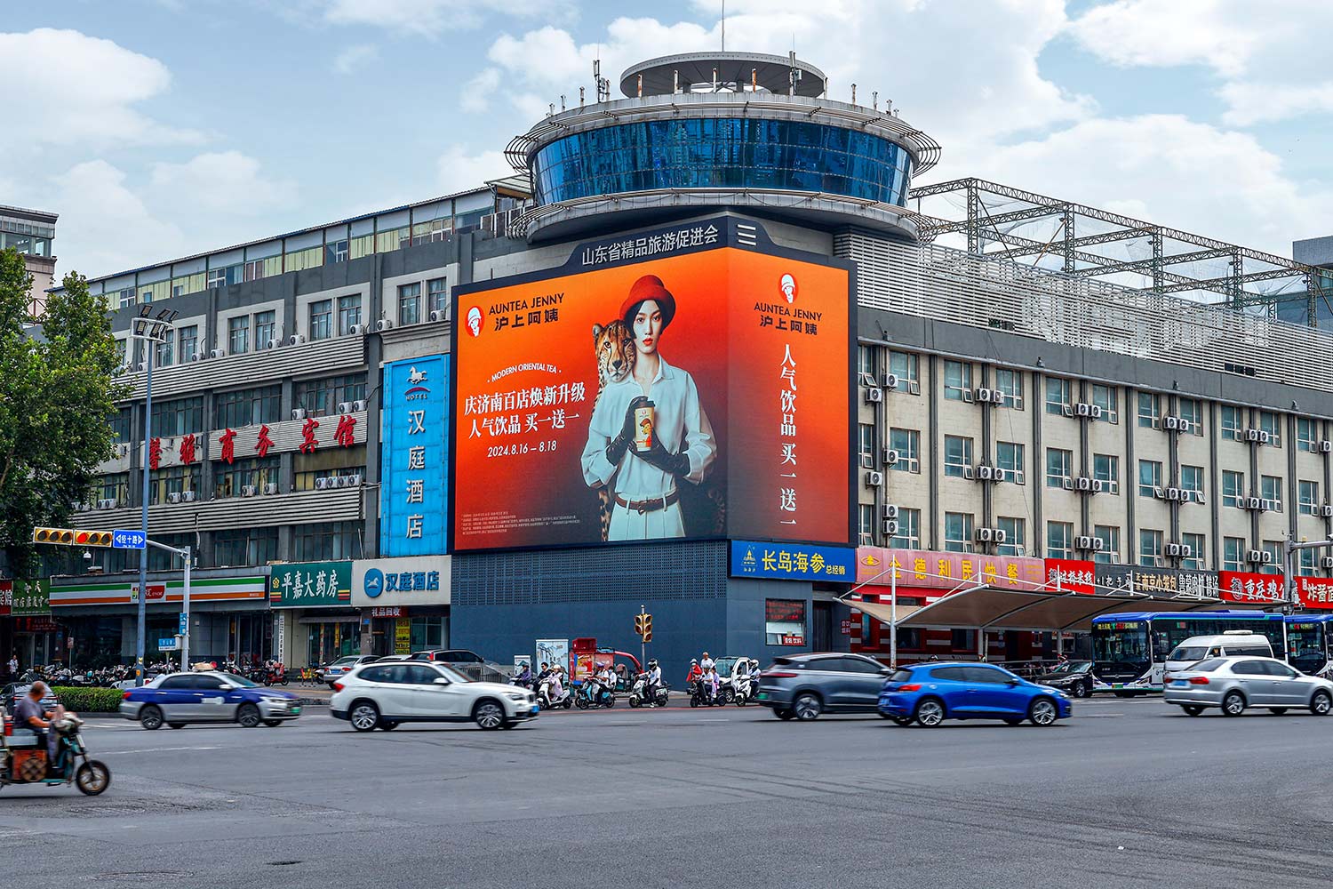 經十路與曆山(shān)路·裸眼3D戶外LED屏   上刊品牌:滬上阿姨)