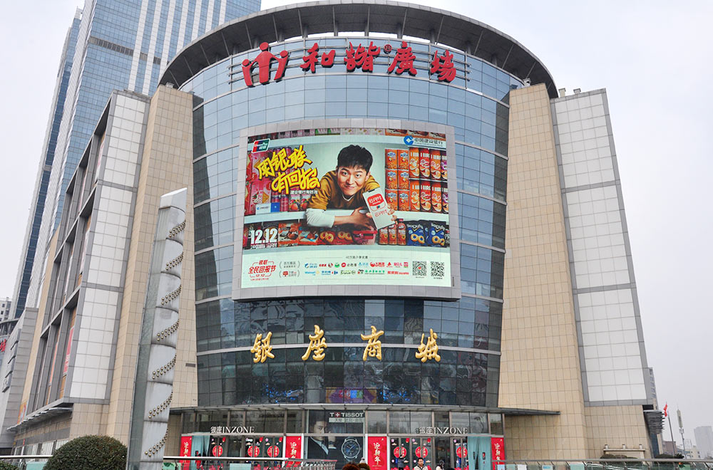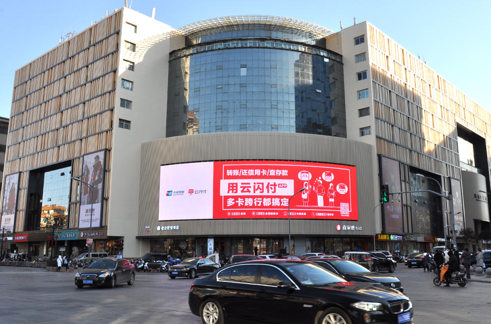 (中(zhōng)國(guó)銀聯投放“經十屏”銀座和諧廣場戶外LED屏廣告)